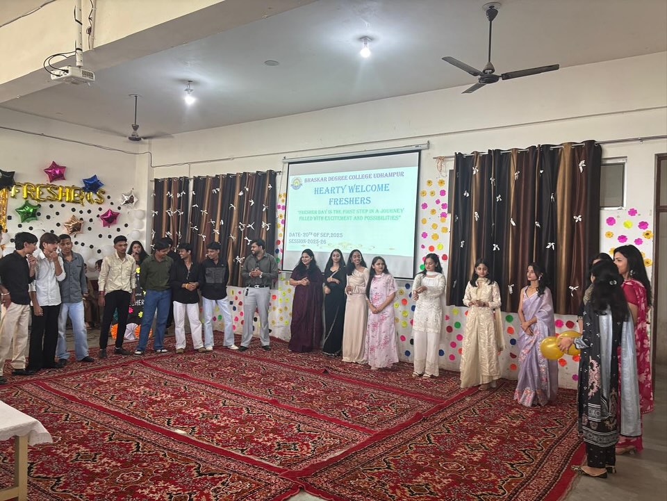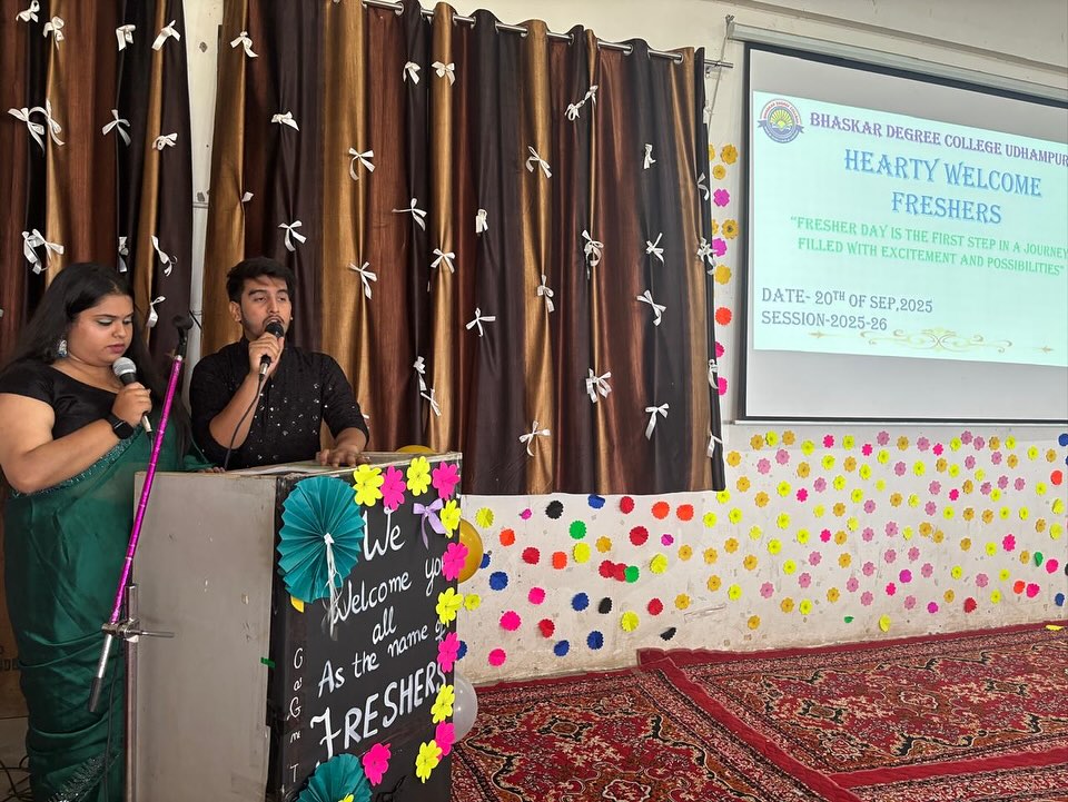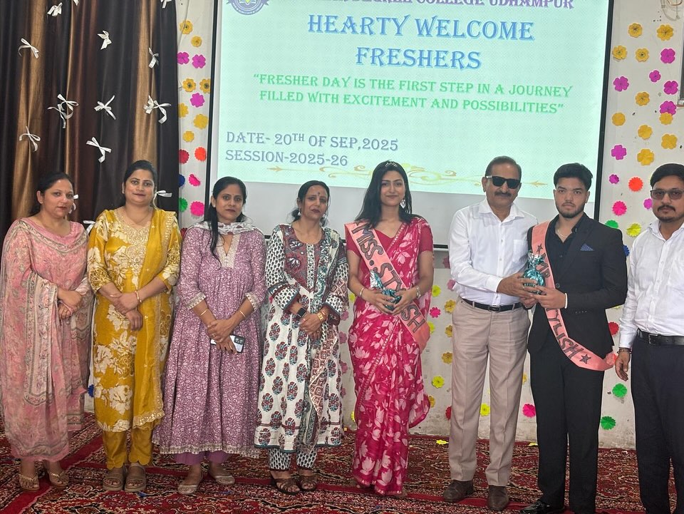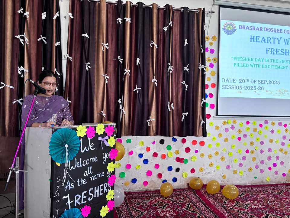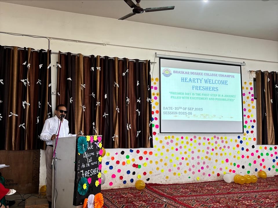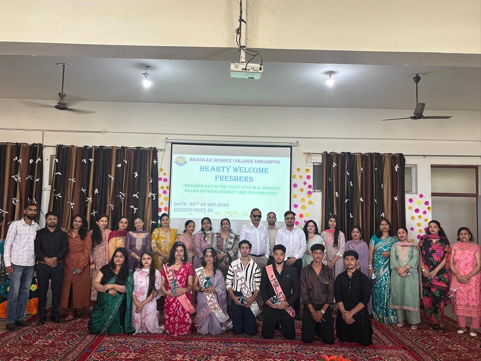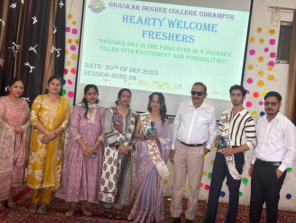 27/11/2025: College Participation in “Display Your Talent 2025 – Devika Zone”. 18/10/2025: Bhaskar Degree College Udhampur celebrated the festival of Diwali. 20/09/2025: The Freshers Party was a vibrant and exciting event organised today specifically for the 1st semester students in the college premises . The purpose of the event was to welcome the new students into the college community, allowing them to engage in various activities, mingle with peers, and get acquainted with the college environment in a fun and interactive manner. There were engaging dance performances and musical renditions by students. These performances showcased the diverse talents of the students and added to the festive atmosphere of the event. Apart from dance and songs, several other activities were organised to ensure that the students had a memorable and enjoyable experience. Games were an integral part of the Freshers Party. These games not only added an element of fun but also helped in breaking the ice among the new students, fostering interactions, and building camaraderie. Dr. S.K. Magotra, Principal of the college addressed the students with words of welcome, encouragement for the students to make the most of their college life, and possibly insights into the college’s values and expectations. Prof. Sakshi presented the welcome address, officially welcoming the new students to the college and setting a positive tone for the event. Prof. Hema also presented the vote of thanks, expressing gratitude to all participants, organisers, and attendees for making the event a success. The Freshers Party was an enjoyable and engaging event for the 1st semester students. It played a significant role in introducing the new students to the college culture, facilitating interactions among them, and setting a lively tone for their journey in the college. On the basis of question and ramp walk round, Mr and Miss Freshers were selected by the judging committee composed of Prof Vijeta, Prof Sonika and Prof Vivek. Ishika won the title of Miss Fresher, Asif won the title of Mr Fresher, Janvi won the title of Miss Stylish and Gourav won the title of Mr Stylish.