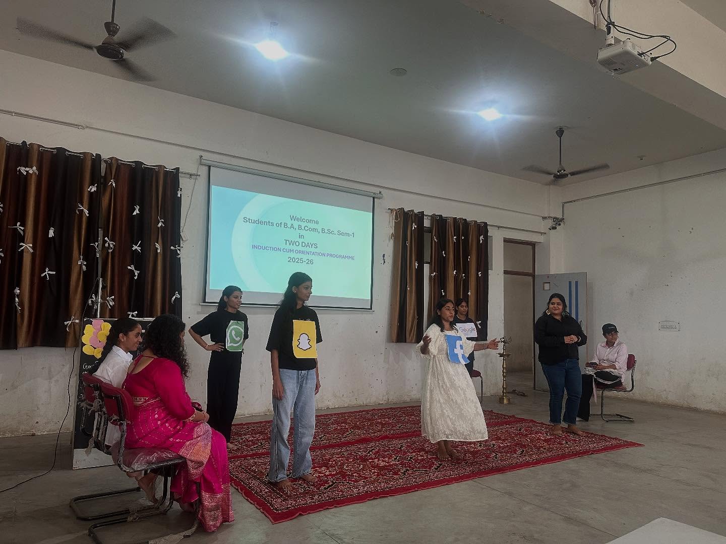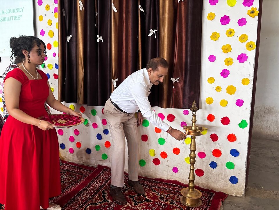 The Induction cum Orientation Program was a comprehensive event that included a series of activities designed to welcome and orient the new students. At the outset, the program began with a Saraswati Vandana, a traditional prayer to Goddess Saraswati, symbolizing the pursuit of knowledge and wisdom.
