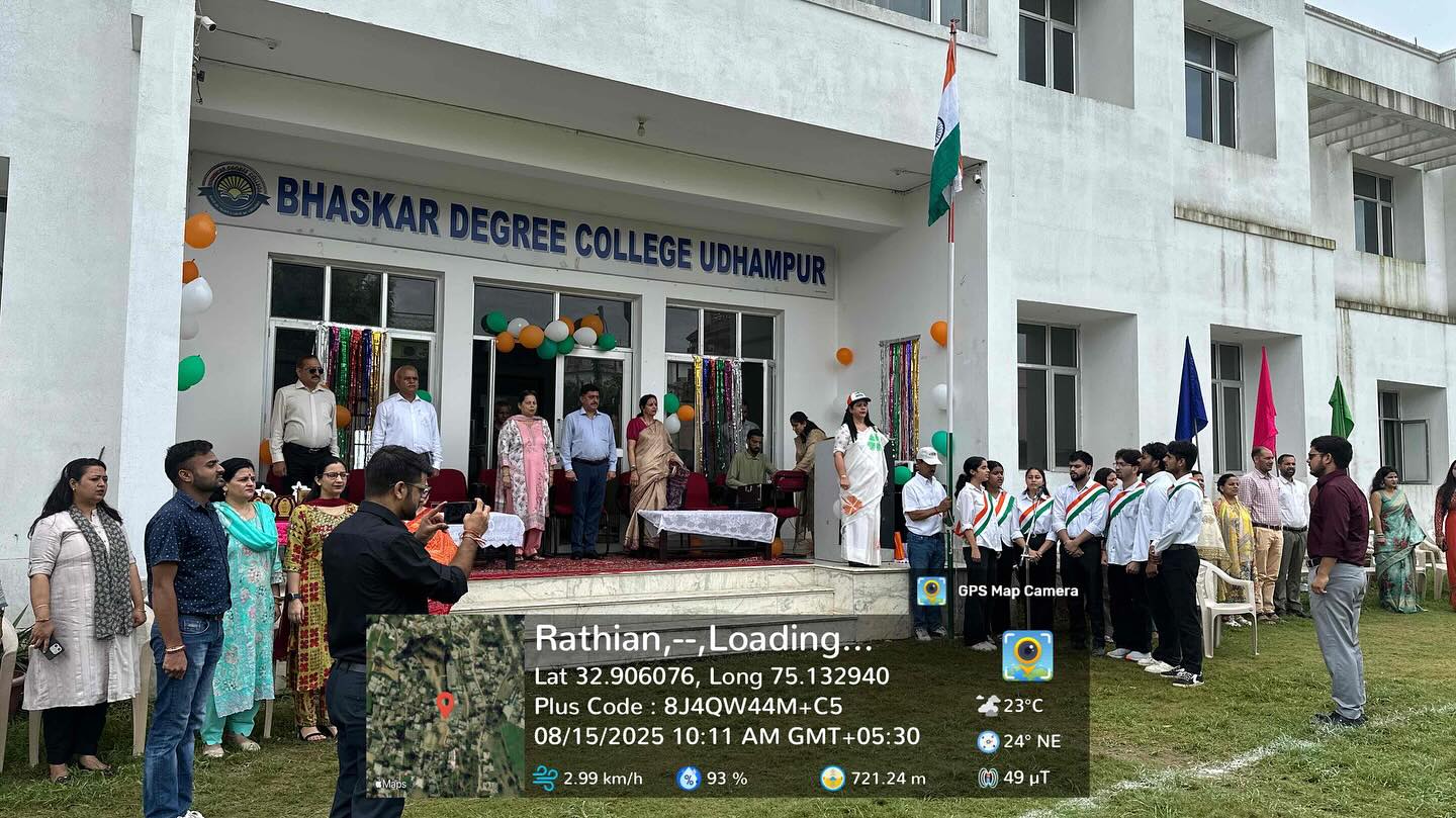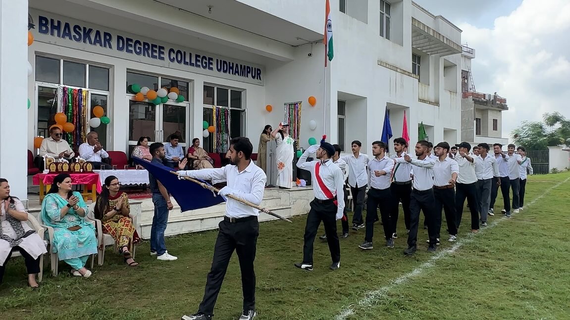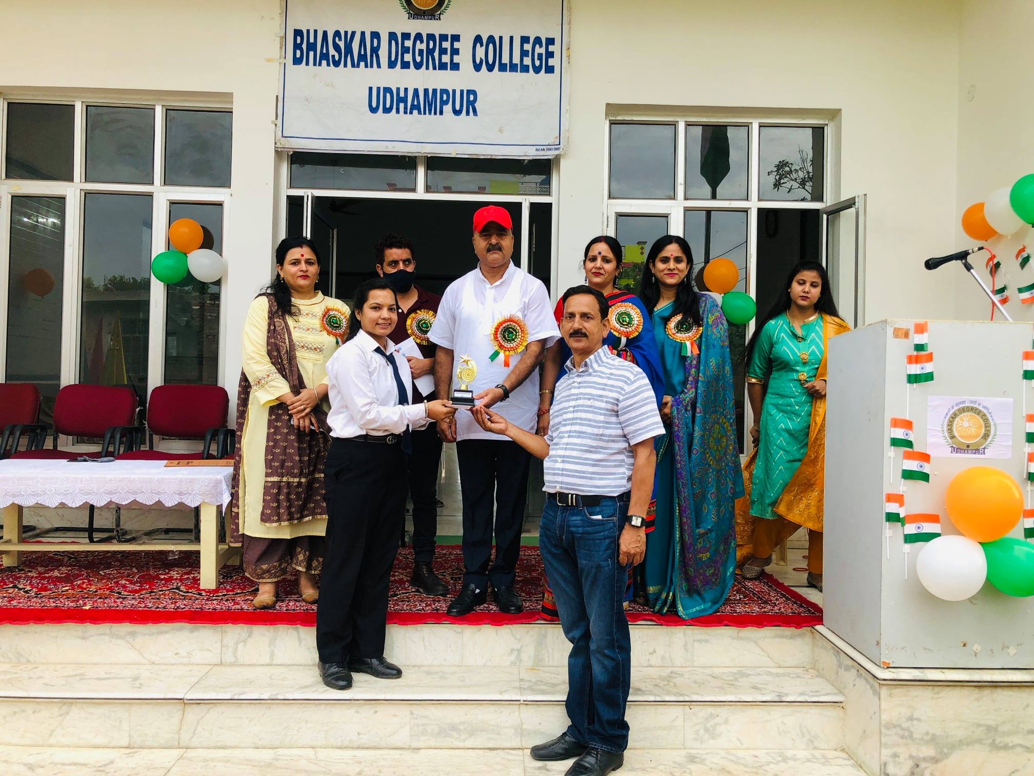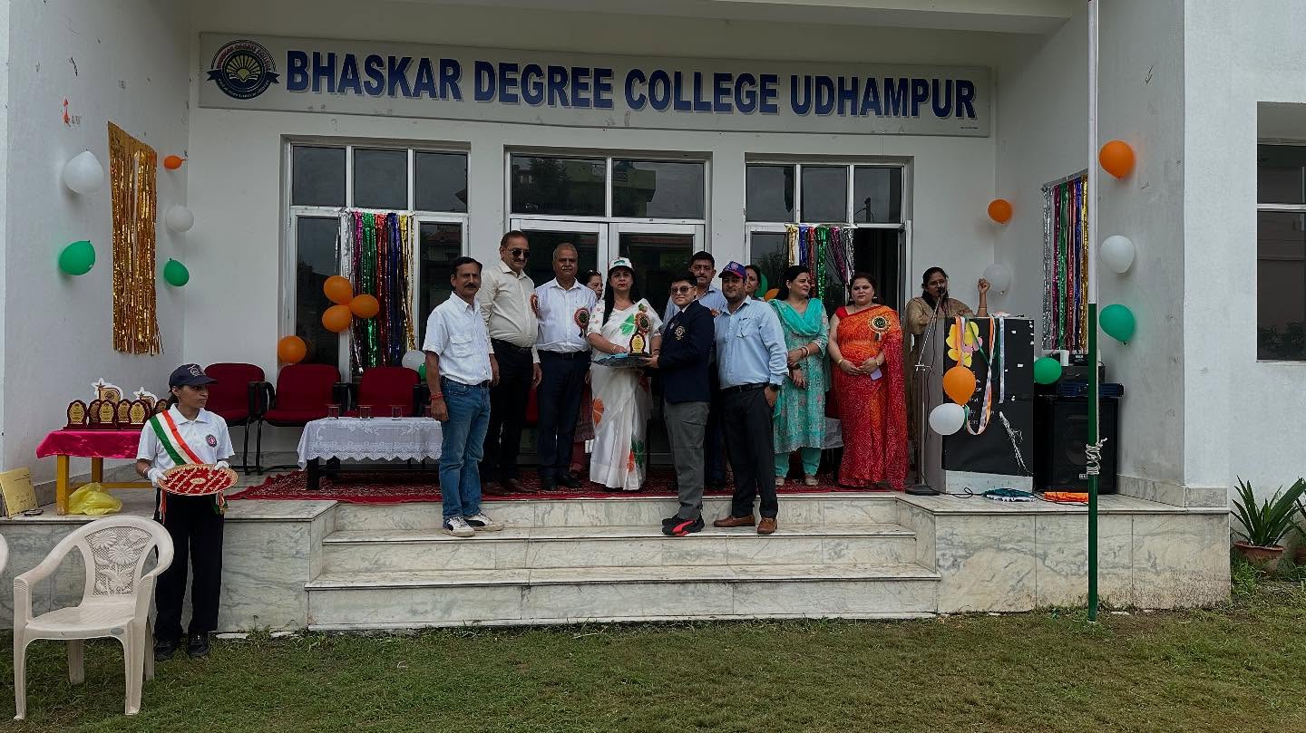 The flag was unfurled by the chairperson of the college Mrs. Madhu Khajuria. Besides her, other dignitaries were also present in the ceremony including Mr. Ashok Khajuria M.D of Bhartiya Group of Colleges, Dr SK Magotra, principal of Bhaskar Degree College, Mr. Rishi, member of the management committee and Prof Savita Sambyal. The programme commenced with the inaugural speech of principal of the Bhaskar Degree College Dr. S.K. Magotra, in which he talked about the nation leaders and new education policy. Prof Bindu Salaria also presented her speech, in which she talked about the formation of our constitution and its importance.