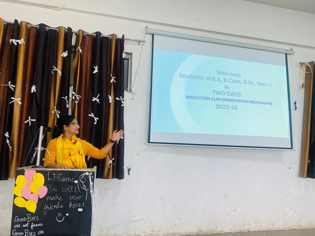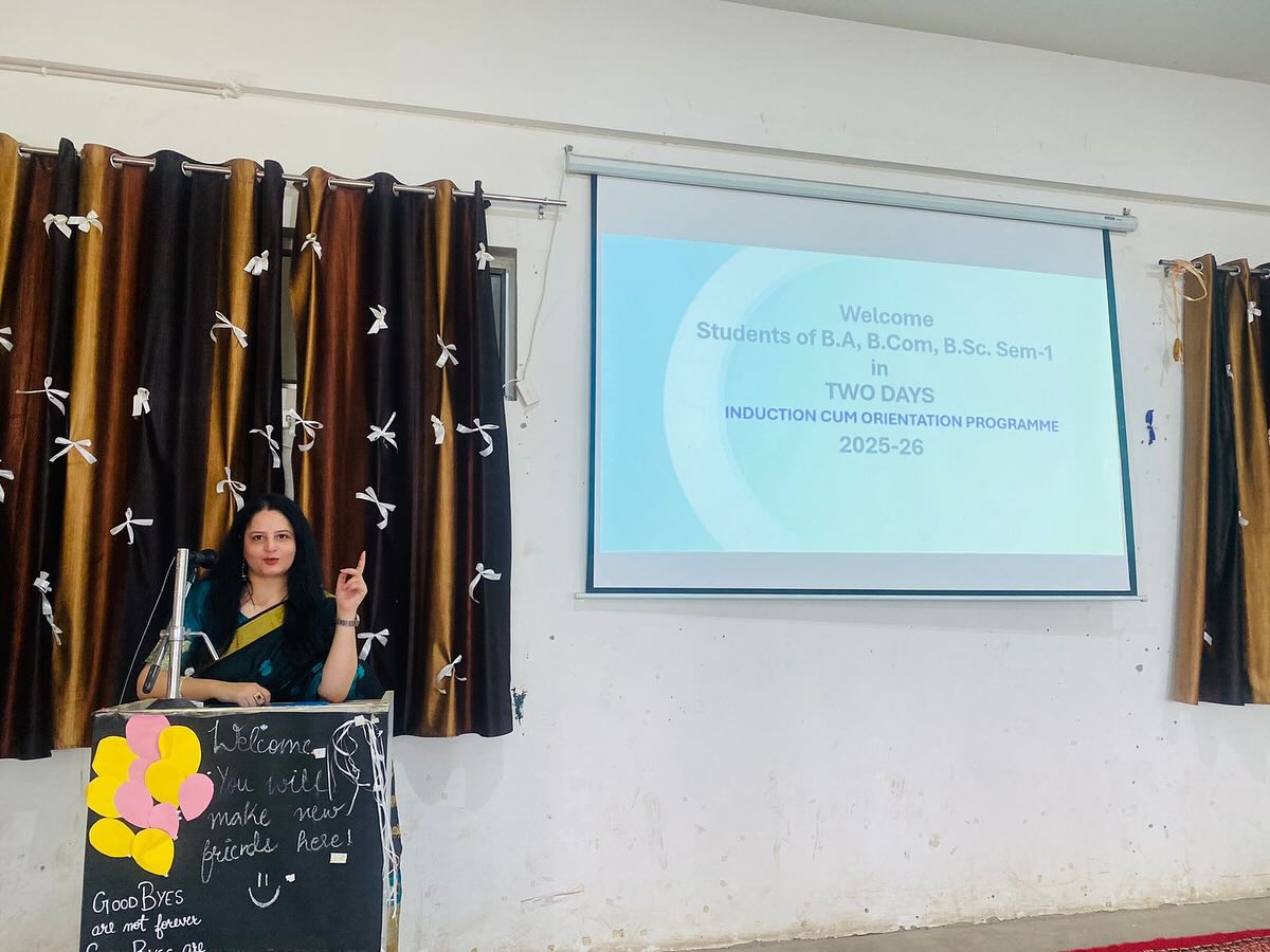 An ice breaking session was conducted where students of semester 1 participated actively. This session was aimed at helping students get to know each other and feel more comfortable in the new college environment. A virtual tour of the college was displayed using a PowerPoint presentation. This tour gave students an overview of the college facilities, departments, and campus layout. The Induction cum Orientation Program was designed to Welcome new students to the college community and provide an overview of college life, academics under NEP, and facilities and help students get acquainted with each other and the college environment. The programme concluded with a vote of thanks presented by Prof Rita Sharma, while expressing her gratitude for the participants and organizers.