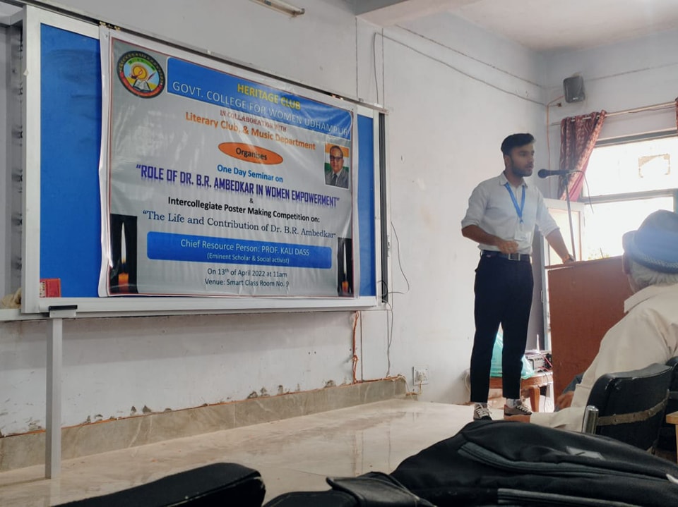 Students of Bhaskar Degree College Udhampur participated in Inter College one day seminar and Poster Making Competition which was held at Government College for Women, Udhampur. The topic of the seminar was "Role of Dr. B.R. Ambedkar in Women Empowerment" whereas the topic of the poster making competition was "The Life and Contribution Of Dr. B.R. Ambedkar". The chief Resource Person of the event was Prof. Kali Dass. Rikhil Goswami of B.A. semester 1, got fourth position in the seminar and Gourav Goswami of B.A. semester-1, got second position in poster making competition.