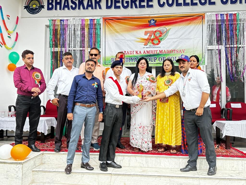 Bhartiya Group of Colleges, Udhampur celebrated Independence Day on 15th August 2023. The celebration began with flag hoisting by Mrs. Madhu Khajuria, Chairperson of Bhartiya Group of Colleges and “Rashtriya Gaan”. At the outset, the principal of the college, Dr. S.K Magotra, addressed the students and faculty members. He threw light on the significance of this day and remembered the sacrifices of our freedom fighters. M.D of the college Mr. Ashok Khajuria, also addressed the students and faculty members with his encouraging words and emphasized on the importance of contribution to be made by youth making India as global leader. Professor Bindu Salaria also briefed about the real significance behind the celebration of Independence Day. The ongoing celebration was filled with colorful and vibrant cultural performances by the students of B.A. B.Sc. B. Com, B. Ed, B.A./B. Ed and M.Ed. The first singing performance was presented by Hardyansh from Semester 3rd Bhaskar Degree College, Udhampur. The next group dance performance was presented by Kusum and group of B.A./B.Ed from Bhartiya College of Education, Udhampur. The third group dance performance was presented by Taniya and group from Bhaskar Degree College. The students of Bhartiya Group of Colleges who participated in different activities were awarded with prizes as a token of appreciation by the Principal and Management of the College. BDC NSS Unit of girls secured first position in parade, BCE B. Ed. grabbed second position and BDC Boys group, B.A./B. Ed Integrated stood 3rd in the parade. The whole event was hosted by Professor Heema Dutt. The success of the event was happened in the presence of Principal Dr. S.K Magotra of Bhaskar Degree College Udhampur, Dr. Anita Bali Principal of Bhartiya College of Education Udhampur, the Management, faculty members and students of the college.
